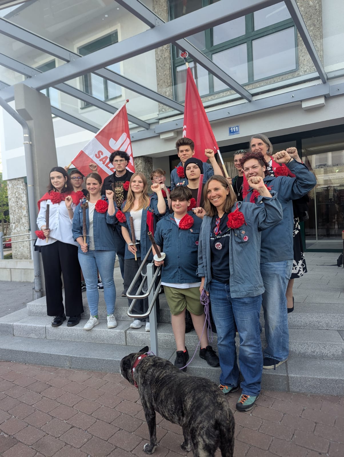Bilder 4-6: Maifackelzug in Puch gemeinsam mit den Roten Falken und Demonstration zum 1. Mai in der Stadt Salzburg mit unseren Schwesternorganisationen AKS, Roten Falken und VSStÖ